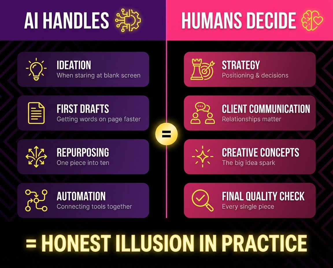 Here is the uncomfortable truth. Most agencies talk big about AI and then use it like glorified autocomplete. They generate a caption, call themselves AI powered, and charge extra for it.